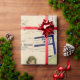 Collage temático de navidades de postales vintage, escritura a mano, partituras y etiquetas de envío en tonos más fríos y azules y verdes. Las imágenes incluyen a un chica con una bolsa de letras, una dama de calendario con un elegante gorra de plumas, y tarjetas de mistletoe y holly. También incluye la escritura francesa antigua y la portada del periódico francés "Le Petit Journal".