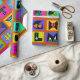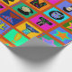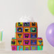 papel envuelto para navidades, envoltura de regalo colorida, papel envolvente para cumpleaños, amarillo azul rojo, rosa verde naranja, arte folclórico tribal, arte popular étnico, arte folclórico alfabético, papel envolvente contemporáneo, Virginia Vivier, arte folclórico vagabundo, envoltura de regalo.