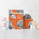 Embalaje de regalo Lacrosse o papel de decoración fiesta con diseño de palos laxos y línea de feliz cumpleaños sobre un fondo naranja. Para personalizar, edite el texto para añadir el nombre del jugador, entrenador o aficionado a los deportes de equipo.