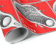 Diseño de Lacrosse giftwrap y feliz línea de cumpleaños sobre un fondo rojo. Editar texto para añadir el nombre del jugador, entrenador o aficionado a los deportes de equipo.