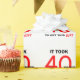 Este divertido papel de envoltura de regalo de cumpleaños número 40 está hecho especialmente para él y dice "le tomó 40 años conseguir este regalo". El diseño aparece sobre un fondo blanco con letras rojas y negras para las palabras. Una gran manera de hacer un regalo de cumpleaños número 40 aún más especial. Derechos de autor Kathy Henis