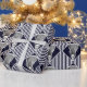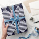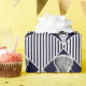 Embalaje de regalo de lacrosse creativo o decoración fiesta para jugador, entrenador o equipo con palo lax sobre fondo azul marino.