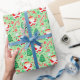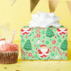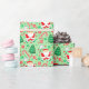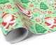 Envoltura de regalo creativa sobre el tema del tenis con un jugador de Santa Claus rodeado de dulces y galletas Navidades.