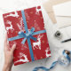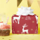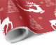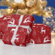 Este alegre papel de envolvimiento muestra un vibrante fondo rojo adornado con renos blancos y árboles de Navidad. Los diseños lúdicos resaltan la alegría de la temporada de vacaciones, lo que lo hace perfecto para envolver regalos.