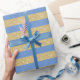 Papel de envolvimiento de rayas Purpurinas Sky Blue y Gold. Es un hermoso patrón. Perfecto para el envolvimiento y la artesanía.