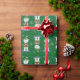 Un Navidad verde clásico envolviendo papel con el divertido patrón de un oso polar llevando dos regalos bajo la nieve. Este diseño también está disponible en azul y rosa. © ArianeC Ilustraciones-Todos los derechos reservados