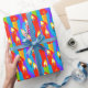 Este papel de envoltura brillante y colorido con brillantes velas de cumpleaños alegrarán cualquier regalo.