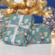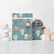 Este papel de envoltura muestra unos impresionantes helados hechos a mano con lloviznas y cerezas, refrescantes bebidas tropicales con paraguas y chanclas florales. Los colores vivos y los detalles alegres evocan un entorno verde azulado desenfadado y una playa de tonos hawaianos.
