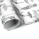 Dibujos de líneas aéreas negras y grises, superpuestos y desde diversos ángulos, sobre un fondo blanco. Un papel de regalo perfecto para el Día del Padre, u otras ocasiones especiales.