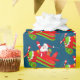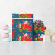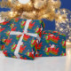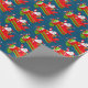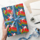 Navidades de Santa, que vuelan en un avión con un saco lleno de regalos y la hélice tiene papel de envoltura de rayas rojas y blancas.
