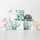 Cazador adorable línea de elefante verde dibujando sobre el patrón de rayas blancas