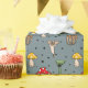 Este papel de envoltura presenta un lindo patrón de setas de bosque sobre un fondo gris oscuro. La idea perfecta para alguien a quien le gustan las setas, la forraje y los diseños naturales.