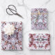 Tres diseños abstractos de manala en flor de cerezo que son elegantes y sugestivos de vidrios o alfombras persas.