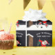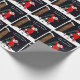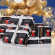 Navidades de hockey creativos envueltos de regalo de vacaciones con un jugador de hockey de Santa en la azotea de la casa.