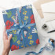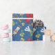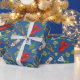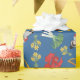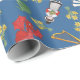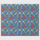 Un rollo de elegante Giftwrap al personalizar, con un patrón de emblemas nacionales galeses, incluyendo lindos dragones rojos, daffodils, puerros, arpas y una niñita vestida con el tradicional traje galés, todo en un fondo azul celeste que se puede cambiar fácilmente, usando el botón Edición > Fondo; de un ilustracion acuarela pintado a mano por Judy Adamson.
