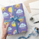 Hermosas imágenes de un sol sonriente feliz, la luna, una pequeña estrella, una nube lluviosa y, por último, un maravilloso arco iris. Haga clic en el personalizar para cambiar el color de fondo (que, en este funda, está definido como morado).