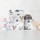Este encantador papel de envolver muestra un diseño caprichoso adornado con ciervos juguetones en un paisaje invernal. Rodeado de estilizados árboles y montañas nevadas, la alegre escena capta el espíritu de las vacaciones, haciendo que cada regalo envuelto en él sea verdaderamente especial para la temporada festiva.