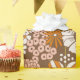 Groovy patrón de lanzamientos florales en tonos retro de marrón, rosa, naranja y verde.
