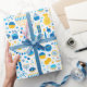 ¡Este papel de envoltura moderno es súper lindo! Tiene menorahs, velas, regalos, gelt y estrellas de David todo en azul y oro. ¡Suficiente para envolver todos tus regalos! ¡Se verán fabulosos!