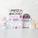 Divertidos y festivos garabatos de cumpleaños morado.