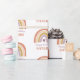El Papel de envolvimiento de cumpleaños púrpura Rainbow Boho Peach presenta un adorable dúo de arcoiris en tonos rosa, rubor, mostaza, agua y marina, junto con caligrafía moderna.