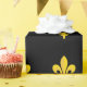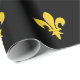 Un patrón de oro Fleur de Lis sobre un papel de envolvimiento negro: perfecto para un regalo elegante y real!
