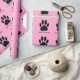 Huellas de perro. Papel de envolver personalizado para los regalos de los perros. Color negro sobre un fondo rosado. Edite el nombre del perro para hacer personalizado este papel de embalaje.
