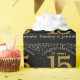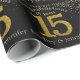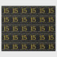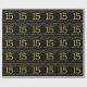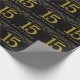 Número 15 en oro purpurina simulado con diamantes en caída sobre negro sólido. Felicitaciones en letra blanquecina y 15 años en letra sólida amarilla dorada. Personalizar con nombres de destinatarios o mensajes personales.