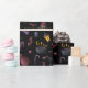 Papel de envoltura de gorra de brujas oscuro de Halloween. El color de fondo negro se puede cambiar a cualquier color. Linternas y brujas brillantes se reproducen alrededor de los gorras brujos.