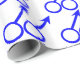 Este impresionante papel de envoltura está diseñado para hombres homosexuales. Presenta dos símbolos masculinos azules uno al lado del otro. El fondo es blanco.