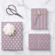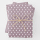 Papel de envoltura de una casa de campo moderna con punto blanco, árbol de navidad y estribo sobre un fondo malva morado. Simple papel de envoltura festiva escandinava para todos tus regalos de Navidades. Diseñado exclusivamente por Happy Dolphin Studio!