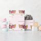 Papel de envoltura de chica dulce hecho a rayas rosas y blancas, con gráficos de una cara de gatito adorable con azotes dorados y una corona rosa y flores rosadas. Personalice el nombre para cumpleaños y más.