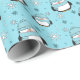 Pequeño pingüino de invierno adornado con una acogedora bufanda azul y un gorra.