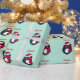 Los pingüinos adornan este papel de envoltura. Personalice este papel de embalaje de vacaciones cambiando el nombre para adaptarlo a sus necesidades. El diseño es de arte original.