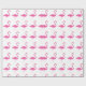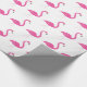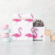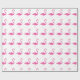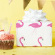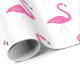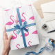 Flamencos rosa bonito sobre fondo blanco decoran este papel de envoltura de fiesta tropical, lo que lo hace perfecto para un cumpleaños, ducha o cualquier ocasión especial de verano.