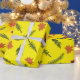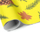 El "Papel de envolver sin foco amarillo con pineconas" capta la calidez de la temporada con hojas doradas, pineconas y ramas. Es una manera festiva y acogedora de envolver regalos durante el día de Acción de Gracias o cualquier celebración de otoño.