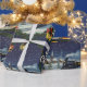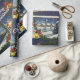 Este papel de envolver festivo es perfecto para añadir un toque de encanto a los Navidades tradicionales a sus regalos. Presenta un patrón repetido en un fondo azul profundo y nevado. Cada sección incluye un clásico de Santa Claus que sostiene una brillante linterna, un tren de vapor al estilo vintage que recorre un pueblo nevado con casas pintorescas y pinos, y un guión de "Feliz Navidad" entrelazado con campanas huecas y jingle. El diseño general evoca un ambiente nostálgico y mágico en invierno, ideal para regalos de vacaciones.