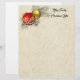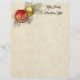 El papel de escribir maravilloso del día de fiesta con navidad sazona el oro y los ornamentos y las ramas rojos del pino, con un fondo de una imagen del papel hecho a mano viejo real, están en este papel de papel con membrete de la letra del navidad de la familia. Las imágenes son public domain debido a los derechos reservados expirados.