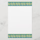 Una hoja de moda Notepaper o Stationery, con un borde de estilo Art Nouveau de Lilies-of-the-Valley sobre un fondo azul; de la colección Posh & Painterly 'For the Love of Lilies'.