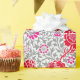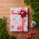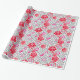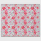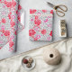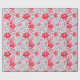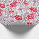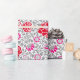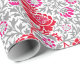 Papel envuelto en papel pintado de William Morris con flores de color rojo profundo y rosa fucsia, con vinagre gris plateado/verde, sobre fondo blanco