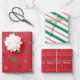 Conjunto de coordenadas de 3 hojas Navidades envueltos de papel, incluyendo 1 de cada una: campanas rojas, franjas rojas y verdes y carol rojo "jingle Bells". Diseños únicos, originales, festivos y divertidos para todos!