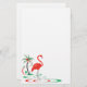Un diseño divertido, festivo y flamingo con un toque retro en rojo y verde. Un flamenco rojo se adentra en el agua, al lado de una palmera decorada con Navidades de baubles y cinta adhesiva. Un diseño de personalizable para que puedas personalizar con tu propio texto, imágenes e ideas. Imagen original de arte digital creada por Jess Perry.