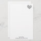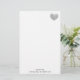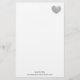 Papel de papel de personalizado con icono de corazón de purpurina plateado. Personalizable estacionario con texto, nombre, monograma, dirección o cita graciosa. Accesorios únicos y suministros de oficina con romántico símbolo de amor purpurinoso. Haz tu propio y brillante membrete para la casa o la oficina de la empresa. Diseño elegante con tipografía elegante. Papel de moda para invitaciones de boda y más. Textura falsa plateada con brillantes y chispas.