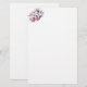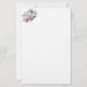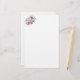 Este papel de papelería se muestra en blanco mate con una encantadora impresión de lirio lila y rosas.