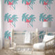 PAPEL DE PALMERAS Y FLAMINGO ROSA