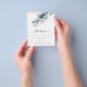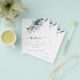 Una alternativa de gran valor a los FOLLETOS DE PAPEL pequeños (4,5” x 5,6”) SIN SOBRES. Las flores azul teñido y azul polvoriento navideñas fluyen hacia abajo desde la parte superior sobre el texto elegante centrado debajo. Personalice fácilmente el texto con sus propios detalles.