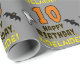 Este espeluznante y espeluznante diseño de papel de envoltura temática de Halloween presenta un gran número "10" y el mensaje "FELIZ CUMPLEAÑOS", más un nombre de personalizable. También hay representaciones de un fantasma y un murciélago en el frente. Envolver papel como este podría ser una manera divertida de envolver regalos que se le están dando a alguien cuyo décimo cumpleaños cae el 31 de octubre (Halloween). [~Z0000411]