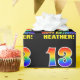 Este divertido, alegre y colorido diseño de papel de regalo de cumpleaños presenta un gran número "13" y el mensaje "FELIZ CUMPLEAÑOS", ambos con un patrón de colorido con gradiente de espectro de arcoíris, junto con un nombre de destinatario personalizado en amarillo intenso. El fondo es de color negro. Papel de regalo divertido con tema de cumpleaños como este podría ser utilizado al dar un regalo o presente en celebración del decimotercer cumpleaños de alguien. [~Z0000475]