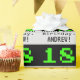 Este diseño de papel envuelto con temática de cumpleaños geek y divertido presenta un gran estilo de videojuegos retro verde número "18" en un fondo de color negro. También incluye el mensaje de bienvenida de cumpleaños "Feliz cumpleaños número 18", y un nombre que puede ser editado. Papel de envoltura divertida como este podría ser usado cuando se le dan regalos al envasado a alguien en celebración de su 18º cumpleaños. [~Z0000403]
