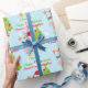 Una linda Gran Nieta feliz primer envoltorio de regalo de Navidad diseñado con un bebé pingüino personalizado usando un tutu rosado y un gorra de santa roja llevando una varita con una estrella dorada mientras se paran al lado de un árbol de Navidad decorado. El texto de la tipografía en rojo y verde y todo sobre un fondo nevado azul. Un precioso papel de envoltura para los regalos de vacaciones de los Navidades de tu bisnieto. Personalizado cambiando el número del año de 1er a 2o o 3er y la Gran Nieta puede ser cambiada por hija, nieta, gran sobrina, diosa o cualquier otra cosa que luego se personaliza con el nombre de la niña.